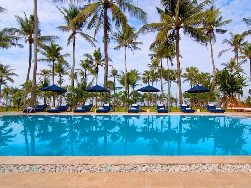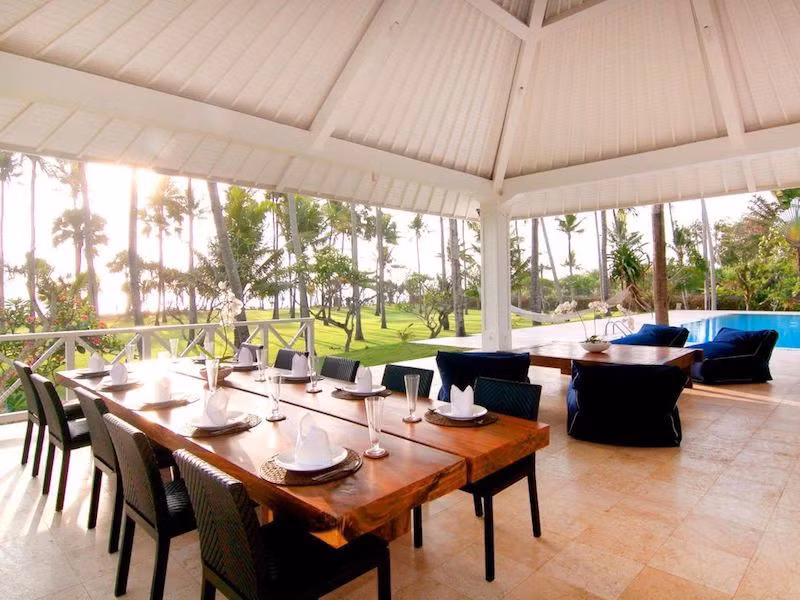 Villa Gajah Putih, Bali, Indonesia. Villa Gajah Putih tọa lạc trong ngôi làng nghỉ mát Canggu, Bali, Indonesia, nổi bật với khuôn viên ngập cây xanh.