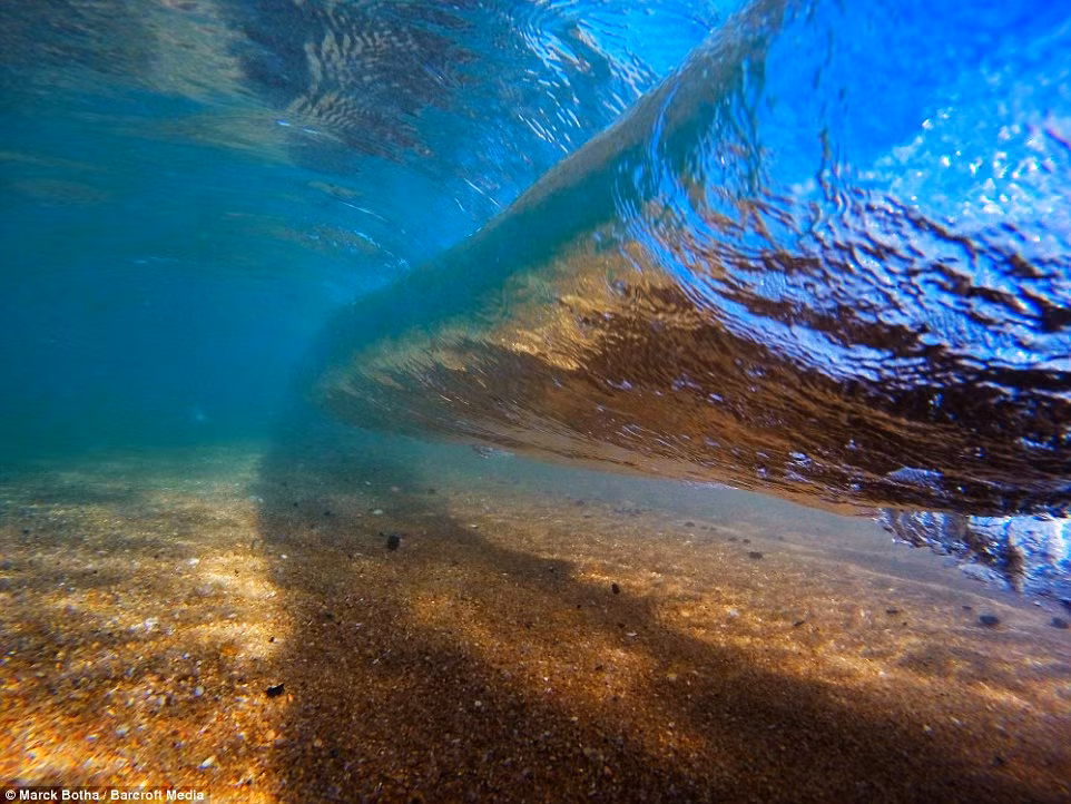 Nhờ kinh nghiệm lướt ván nhiều năm ở vùng biển này, Marck Botha đã lựa chọn được vị trí tốt nhất để ghi lại vẻ đẹp ngoạn mục của cơn sóng cuộn.