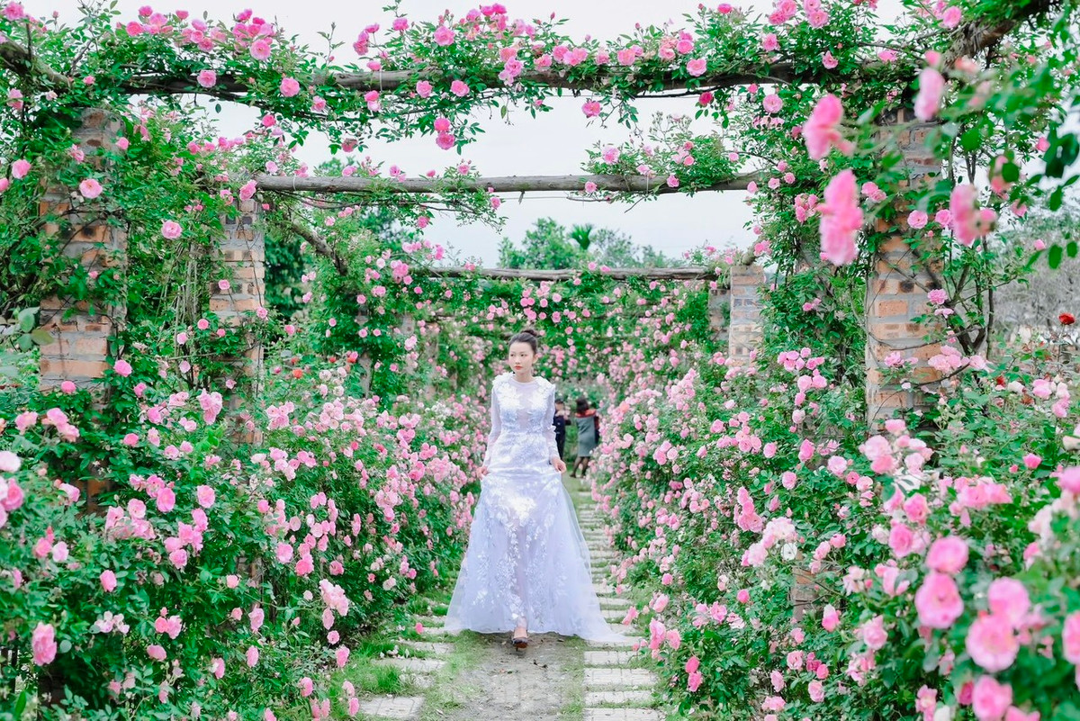 Nhiều bạn trẻ đã kỳ công lựa chọn những bộ trang phục ấn tượng nhất để chụp hình với khu vườn hồng đang độ bung nở đẹp nhất.