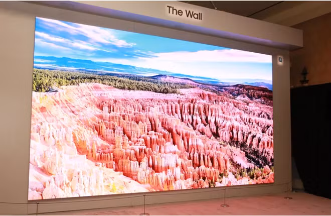 TV “The Wall” Samsung - Bức tường có kích thước 292 inch (cao 7,4 mét), trông đúng giống như một bức tường có thể hiển thị hình ảnh. Sự kết hợp của kích thước lớn, độ sáng cực cao và độ tương phản đã khiến các tín đồ công nghệ phải trầm trồ.
