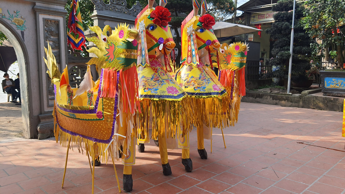 Nhiều người cũng bỏ ra từ vài trăm nghìn đến vài triệu đồng để mua các mâm lễ trong đó không thể thiếu là những chú ngựa làm từ tre và giấy để cúng tiến.