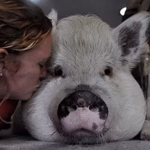 Chú lợn đáng yêu...selfie cùng mẹ nuôi.