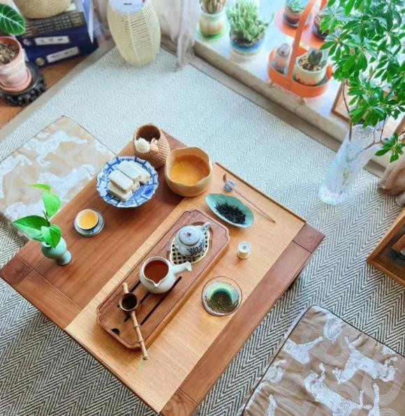 Nhưng ai ngờ được, chồng tôi là người rất quyết đoán. Chẳng kịp để tôi phản ứng, anh ấy đã bắt đầu công cuộc cải tạo. Tôi nhìn anh dọn dẹp hết các giá phơi đồ, các đồ lặt vặt, rồi mang về những chiếc bàn trà và đệm ngồi mang phong cách cổ điển, treo lên vài bức tranh chữ, đặt thêm vài chậu cây xanh.