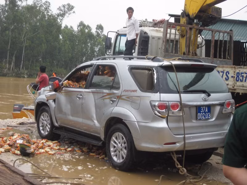 | Chiếc xe bị chìm sâu trong lòng sông. |