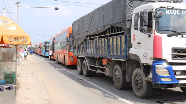 | Hình ảnh kẹt xe do các tài xế chặn đường tại trạm thu phí BOT Cái Răng trưa 5/1 - Ảnh: LÊ DÂN |