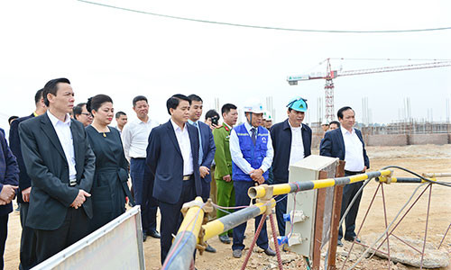 | Chủ tịch Nguyễn Đức Chung thăm dự án đầu tư xây dựng nhà máy nước mặt sông Đuống. |
