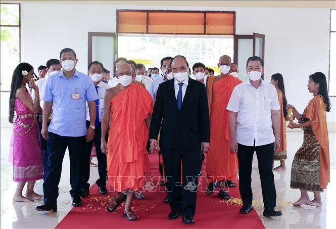 Nhân dịp Tết cổ truyền Chôl Chnăm Thmây của đồng bào Khmer Nam bộ, sáng 7/4/2022, Chủ tịch nước Nguyễn Xuân Phúc đến thăm Học viện Phật giáo Nam tông Khmer