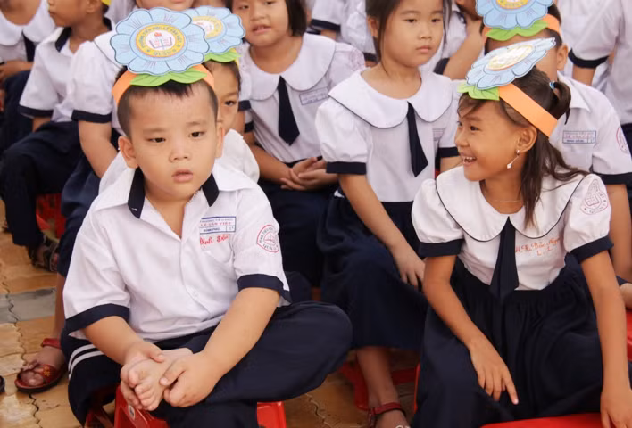 "Heo vàng" lớp 1 chào thầy cô và các anh, chị.