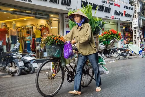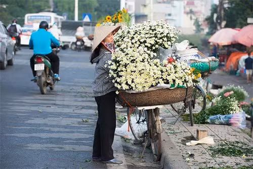 Những người làm văn phòng, cơ quan hay những bà nội trợ không có thời gian lên vườn hoa Nhật Tân, Quảng Bá, Tây Tựu, Ngọc Hà… để ngắm hoa và mua hoa thì đã có những gánh hoa tươi âm thầm, lặng lẽ đưa hoa về tận phố, tận nhà.