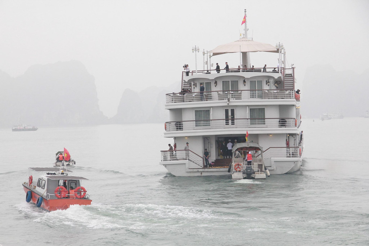 Chiếc tàu chở phái đoàn đi tham quan vịnh Hạ Long.