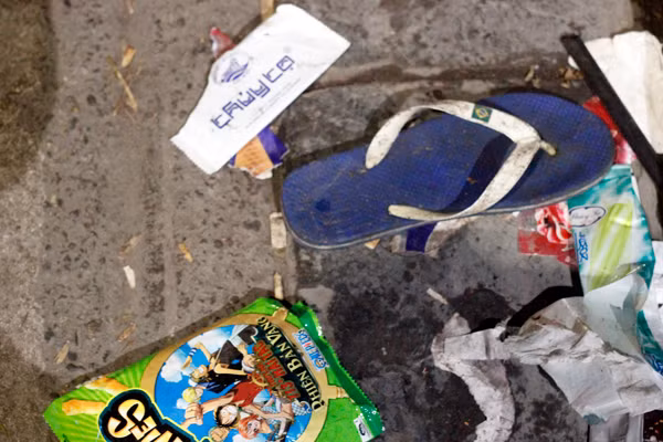 (Kiến Thức) - Xung quanh hồ Hoàn Kiếm, quảng trường Đông Kinh Nghĩa Thục, nhiều rác thải, vỏ chai bia, áo, dép... bị vứt bừa bãi ngay sau giao thừa 2017 ở Hà Nội.