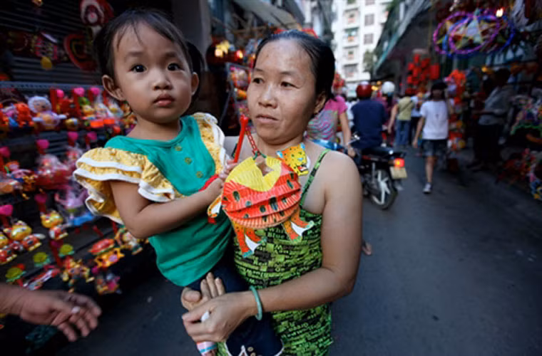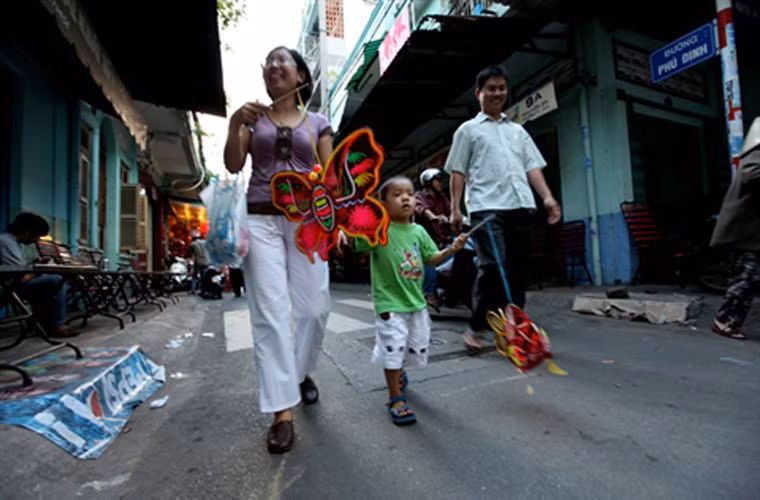 Cả gia đình tung tăng trên phố "Đèn lồng".