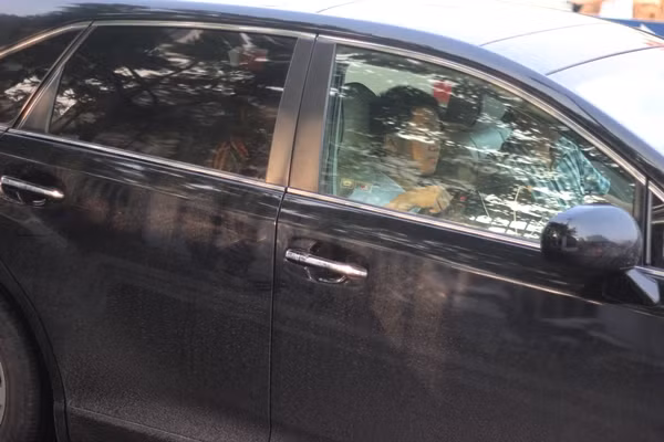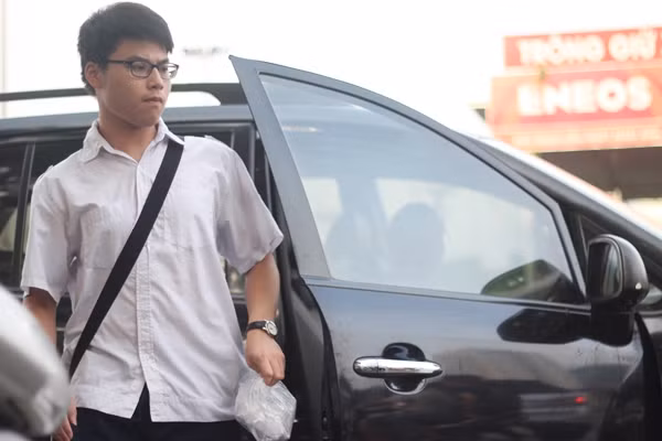 Một nam sinh đến trường thi bằng ô tô riêng.