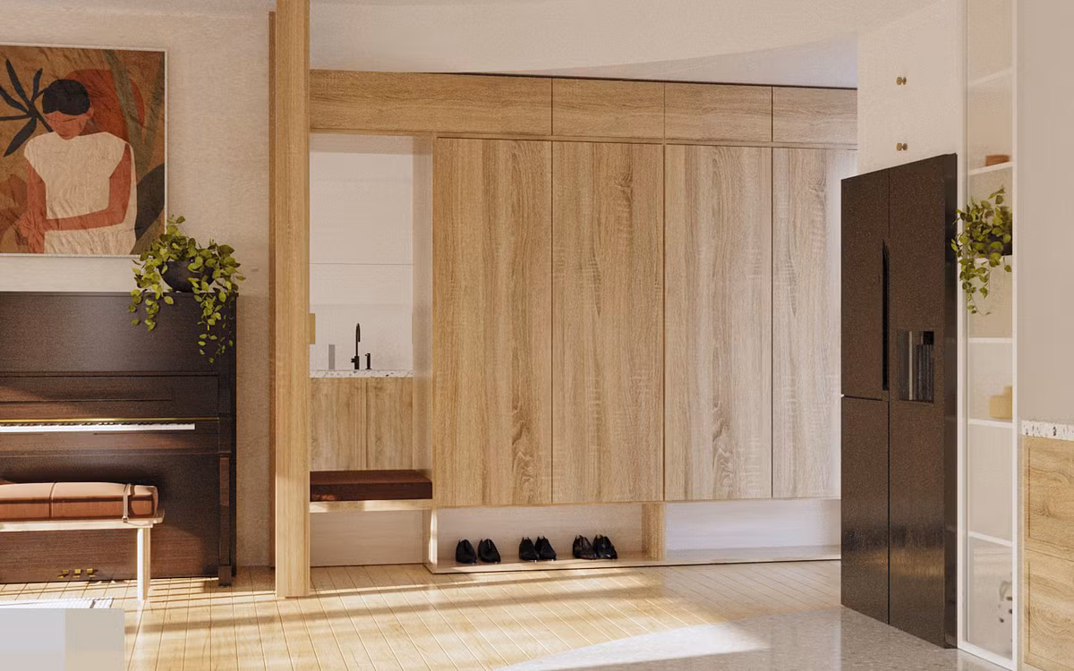 | Căn hộ mang tên “Piano house” được anh Đoàn Mạnh và nhóm kiến trúc sư thiết kế thực hiện cuối năm 2021. Đây là nơi an trú bình yên của gia chủ yêu âm nhạc vì vậy không gian mang đậm nét nghệ thuật. Căn hộ thiết kế đơn giản nhưng thu hút, mang đến cho gia chủ những trải nghiệm mới mẻ. |