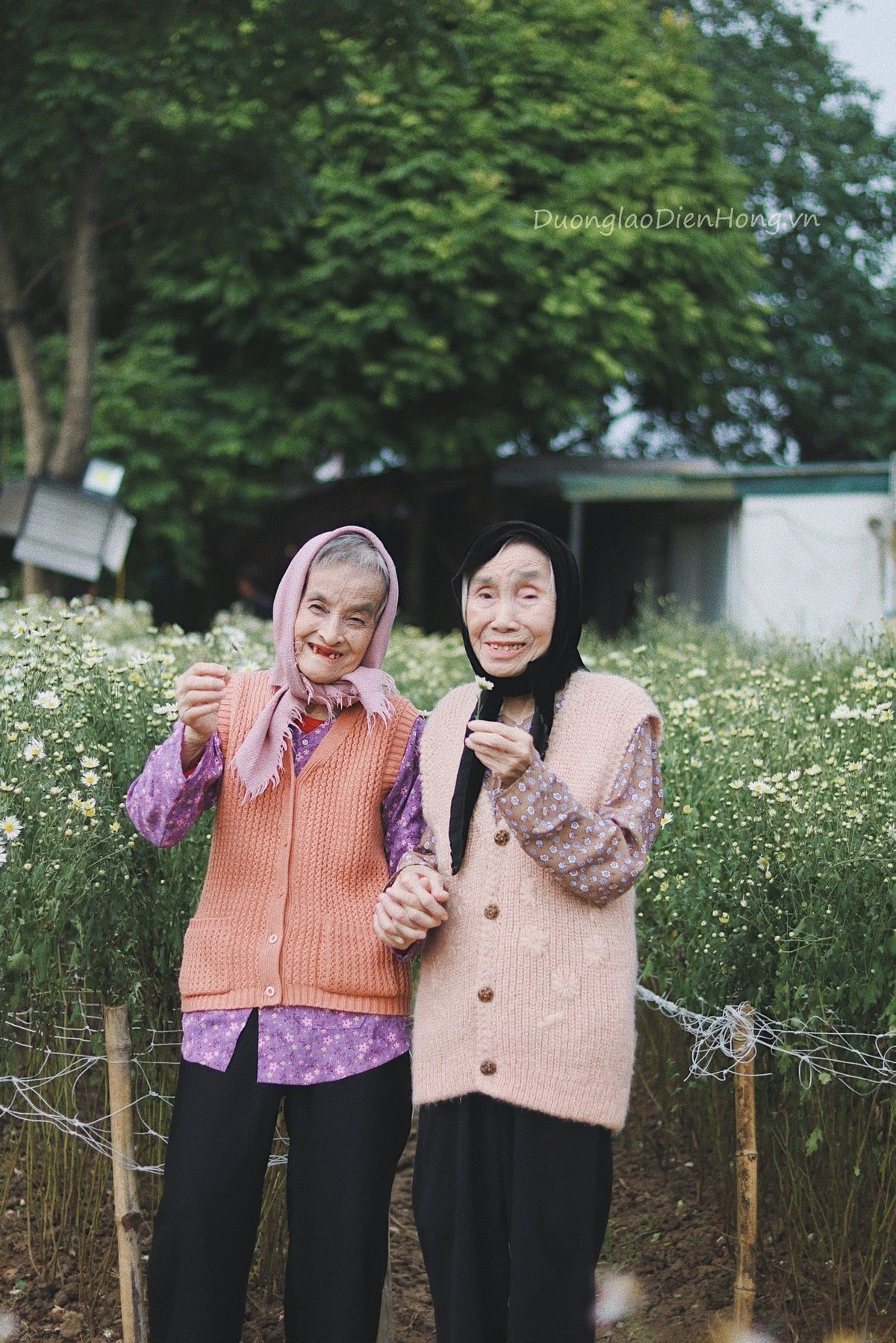 Hiện bộ ảnh hai cụ bà trong vườn cúc họa mi vẫn đang được quan tâm và chia sẻ nhiều trên mạng xã hội. Ảnh: Dưỡng lão Diên Hồng