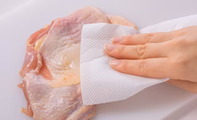 Trong trường hợp bạn không lót giấy khi rã đông, nếu thấy thịt chảy nước, cần lau sạch trước khi sử dụng nấu nướng.