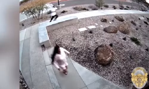 Khi chạy qua đồn cảnh sát Peoria, hai nghi phạm ăn trộm trèo qua cổng để vào sân bên trong. Đoạn video do camera giám sát ghi lại cho thấy Al Ebadi dường như đã phát hiện mình vừa chạy vào đồn cảnh sát và cố gắng thoát ra ngoài.