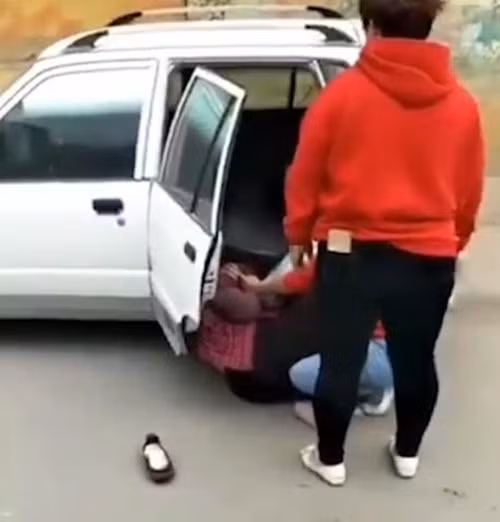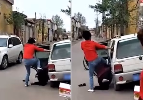 Không chịu nổi hành động ngỗ ngược của người phụ nữ bất hiếu, một người đàn ông cùng thôn đã tiến đến, đá vào chân của người phụ này, ngăn không cho cô tiếp tục ngược đãi mẹ mình.