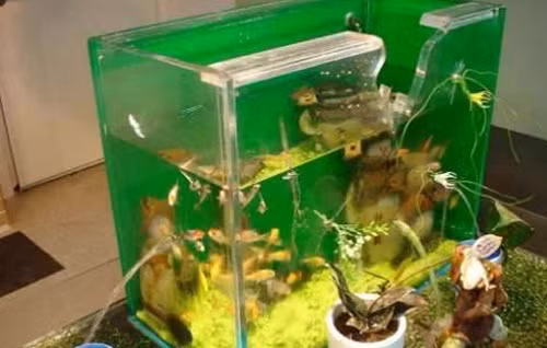 Đem về nhà, chàng trai cẩn thận đặt nó vào trong bể cá, vui vẻ nghĩ rằng bể cá nhà mình lại có thêm một động vật thủy sinh mới lạ làm bạn.