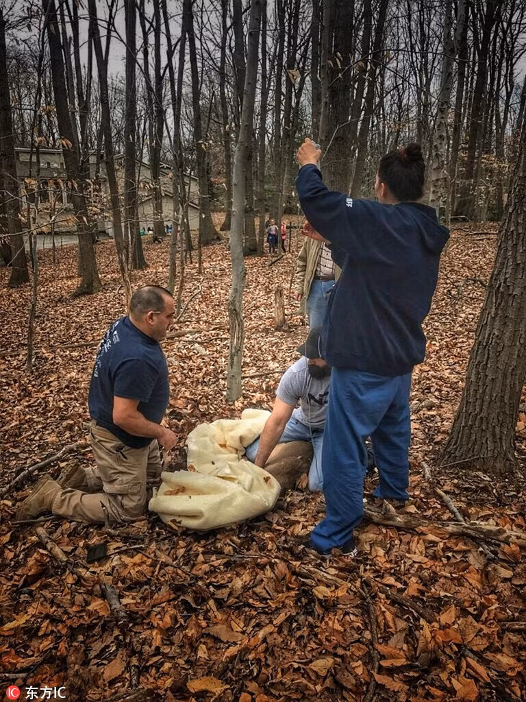 Phát hiện ra sự thật, những nhân viên của hiệp hội bảo vệ động vật lập tức dùng thuốc an thần để khống chế con nai. Sau khi chờ nó bình tĩnh lại, họ đã tiếp cận và cứu trợ khẩn cấp cho nó.