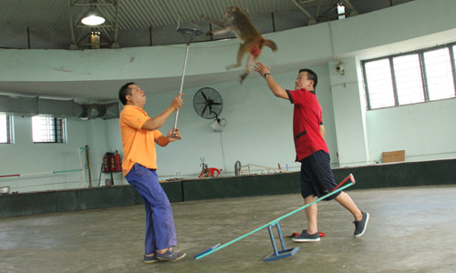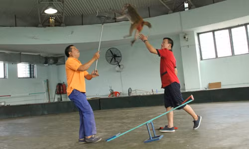 | Tuổi tập xiếc của khỉ thường bắt đầu từ 1 đến 2 tuổi. |