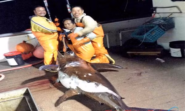 | Cá ngừ trên tàu sau sơ chế. Ảnh: Ng.Khánh |