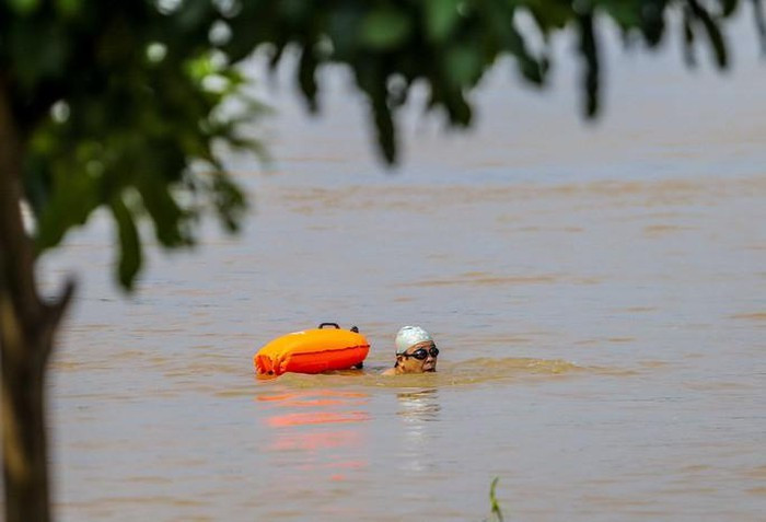 Một vài người dân bất chấp nguy hiểm vẫn bơi ở đây trong những ngày này