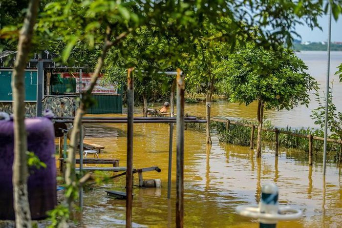 Bãi giữa sông Hồng (Hà Nội) ngập sâu khiến nhiều người dân đi đò ra bãi để thu hoạch nông sản. Khu tập thể thao ở giữa sông Hồng cũng ngập nước, nhiều người vẫn bơi giữa dòng nước chảy xiết.