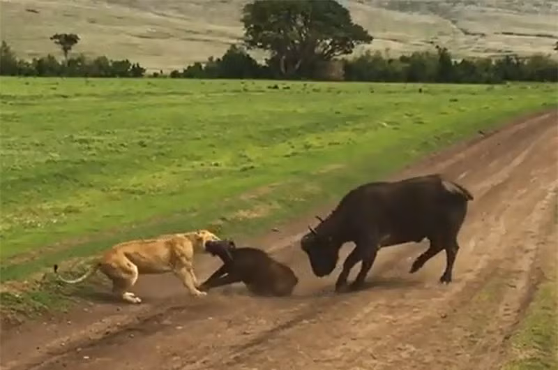 Được biết, cảnh tượng này do du khách tình cơ ghi lại được khi đang tham quan vườn quốc gia Serengeti ở Tanzania. Trong đoạn video này, hai con sư tử cái đã khiến người xem phải trầm trồ thán phục trước kế hoạch săn trâu rừng của mình.