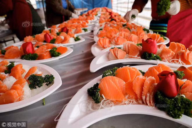 Để hoàn thành nhiệm vụ lần này, bếp trưởng đã phải huy động một đội ngũ đầu bếp lên đến 15 người, tất cả đều làm việc trong khách sạn ở thành phố về trước 2 ngày để chuẩn bị.