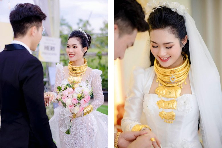 Mạng xã hội mới đây vừa chia sẻ một clip ngắn ghi lại lễ thành hôn của 2 vợ chồng trẻ. Tài khoản Sang Lê - người đăng tải đoạn clip cho biết, cô dâu - chú rể ở Đức Hoà (Long An) đã được nhận số hồi môn "khủng" từ gia đình 2 bên bao gồm: 14 cây vàng, 10.000 USD, 200 triệu VNĐ, một căn nhà 500.000 USD.