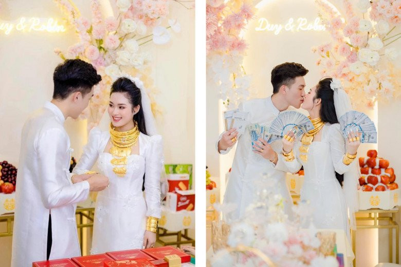 Được biết, cặp vợ chồng son này là Robin Nguyễn và Tường Di, cả 2 đều 19 tuổi. Cô dâu cho biết trong đám cưới, cô nhận được tổng giá trị tài sản lên tới hàng chục tỷ từ cha mẹ hai bên. Trong đó, nhà trai trao một bộ hột xoàn, một nhẫn cưới hột xoàn, 10 cây vàng, 10.000 USD. Gia đình nhà gái cho 200 triệu VNĐ và 4 cây vàng. Ngoài ra gia đình chú rể còn đặc biệt tặng thêm một căn nhà 500.000 USD tại Mỹ.