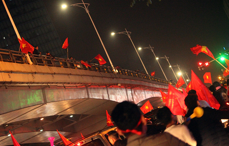 Tuy nhiên, khi xuống đường ăn mừng chiến thắng của đội tuyển Việt Nam một số cổ động viên quá khích đã đốt pháo sáng.