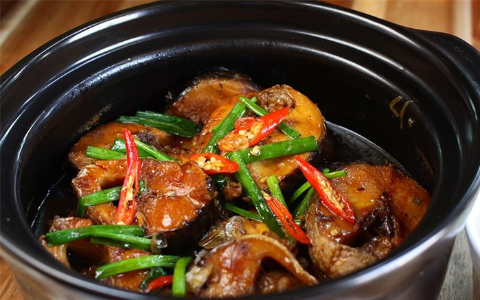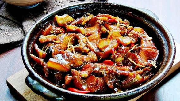 - Rắc lên bên trên ớt thái lát, rau răm thái nhỏ, một ít tiêu bột là bạn đã có thể thưởng thức món cá trê kho gừng thơm ngon rồi.