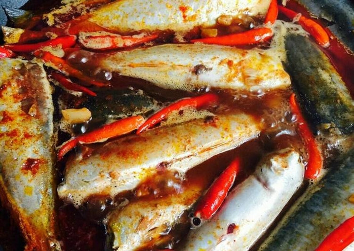 - Lót các miếng riềng dưới đáy nồi, tiếp theo lần lượt là lớp thịt ba chỉ, cá, ớt sau đó cho nước vào đến mặt cá và đun sôi. Khi thấy nước sôi, bạn nêm nếm gia vị và tiếp tục đun nhỏ lửa cho đến khi cá kho chuyển màu vàng đẹp mắt và nước gần sánh lại thì tắt bếp.
