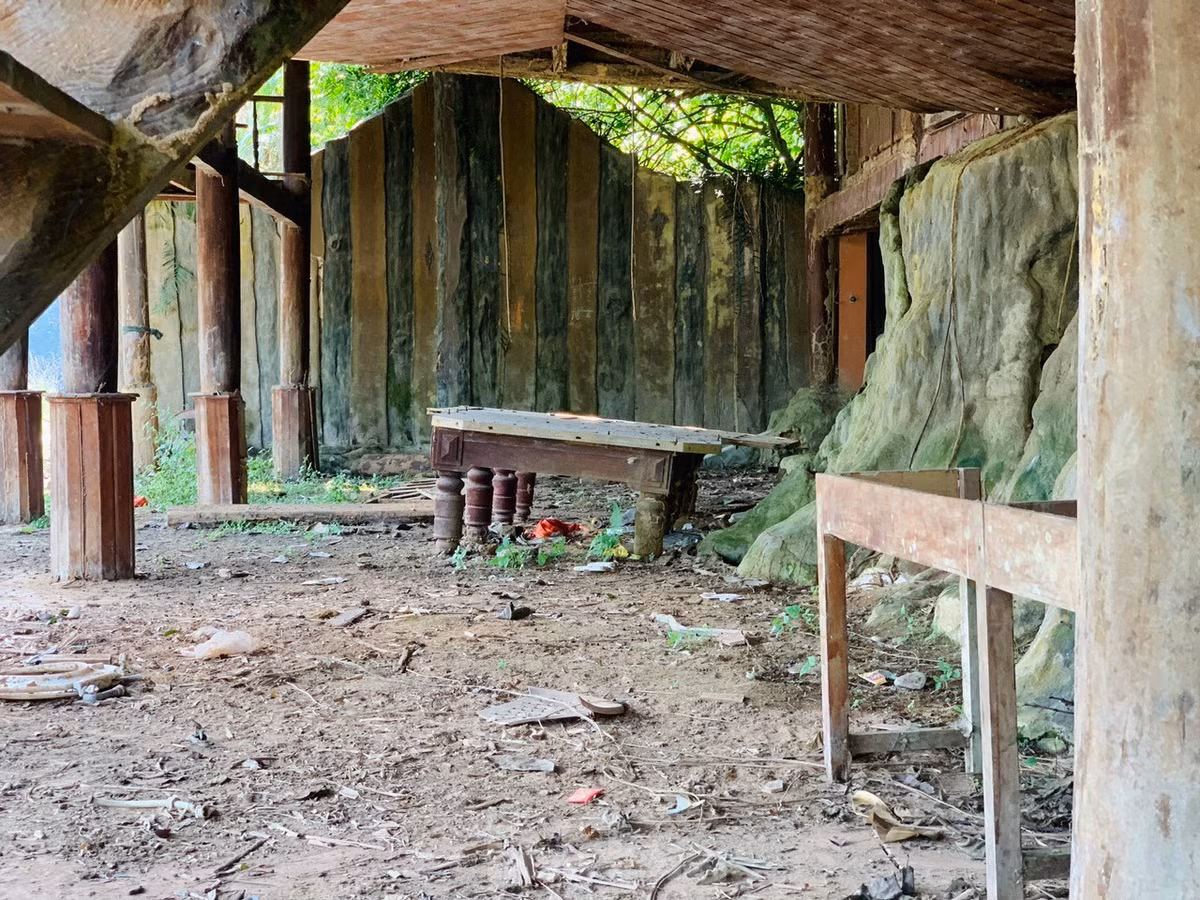 Từ biển báo hướng dẫn đến nhà hàng, hệ thống nhà sàn nghỉ dưỡng đều hư hỏng nghiêm trọng.