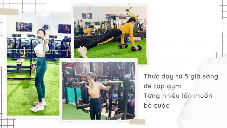 Hàng ngày, mình đến phòng Gym vào lúc 5 giờ sáng tập khoảng một tiếng đến một tiếng rưỡi. Thời gian đầu mình cảm thấy rất mệt, có những lần muốn bỏ cuộc nhưng rồi động lực để mình tiếp tục đó là thành quả từ sự tập luyện. Cơ thể mình thay đổi rất nhiều, vóc dáng săn chắc, thể lực tăng lên. Và đến bây giờ việc tập luyện đã trở thành thói quen hàng ngày của mình.