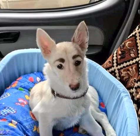 Chú chó idol mạng này sở hữu bộ lông trắng và cặp chân mày đen tự nhiên. Tuy nhiên, trước khi trở nên nổi tiếng trên MXH, bé cún này từng gặp khó khăn trong việc tìm kiếm một người chủ sau khi bị bỏ rơi mới 10 ngày tuổi.