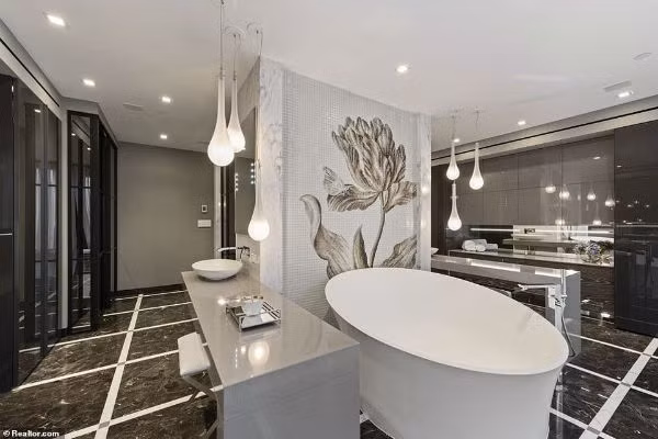 Với thiết kế hiện đại, sang trong, các phòng trong biệt thự này có những ô cửa lớn nhằm lấy ánh sáng tự nhiên. Ngoài ra nhà cũng có bể bơi riêng, phòng tập gym và garage để xe. Đặc biệt, phòng bếp và phòng tắm gây ấn tượng khi sử dụng đá cẩm thạch.