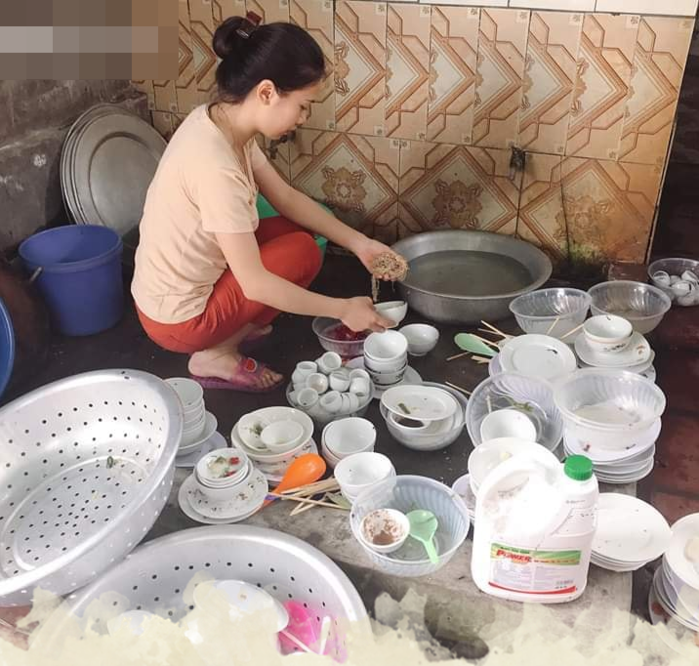 Nhìn tấm hình chắc nhiều người nghĩ hẳn là cả họ đã vừa ăn uống linh đình xong chỉ có mỗi mình các chị em phải dọn dẹp.