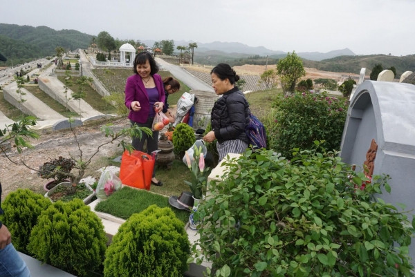 Tại Công viên nghĩa trang Lạc Hồng Viên (Lương Sơn, Hòa Bình) sáng ngày 7/3 có rất nhiều người trong gia đình, dòng họ và cả những trẻ nhỏ quây quần về đây vái vọng tổ tiên, viếng những người thân đã khuất.
