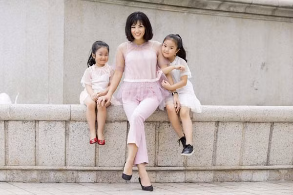 Diện những chiếc váy cá tính, Thanh Hương trông thật rạng rỡ cùng nụ cười tỏa nắng đầy hạnh phúc bên hai thiên thần của mình.