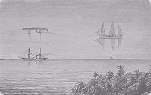 Một bức tranh có từ thế kỷ 19 mô tả hiện tượng ảo ảnh trên biển. (Nguồn: Blogspot.com)