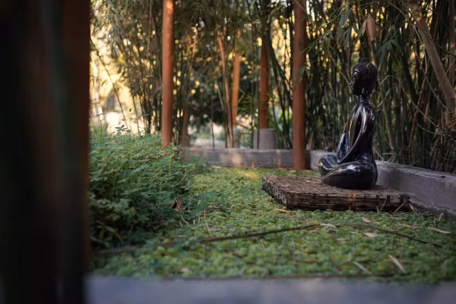Sân vườn bố trí nhiều tiểu cảnh lạ mắt, phục vụ nhu cầu đi dạo thư giãn, ngắm cảnh vào mỗi sáng sớm hay chiều tà của mọi người trong nhà.