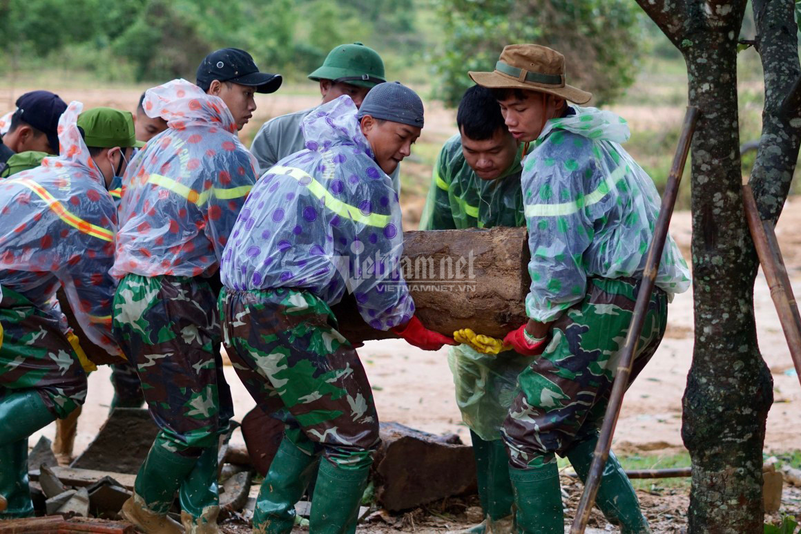 Những ngày qua, hơn 100 cán bộ, chiến sĩ đoàn Thanh niên Công an tỉnh Quảng Trị có mặt tại địa phương này giúp người dân dọn dẹp. Các chiến sĩ lội bùn, dùng cuốc, xẻng dọn dẹp hàng ngàn mét khối bùn đất đặc quánh để người dân ổn định cuộc sống, học sinh sớm quay lại lớp.