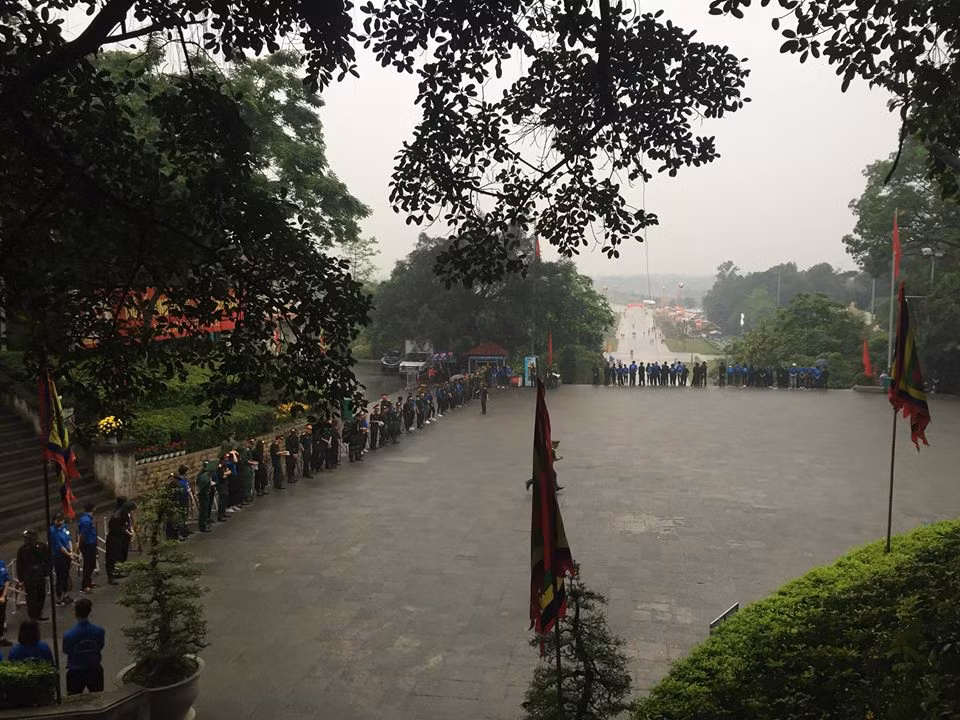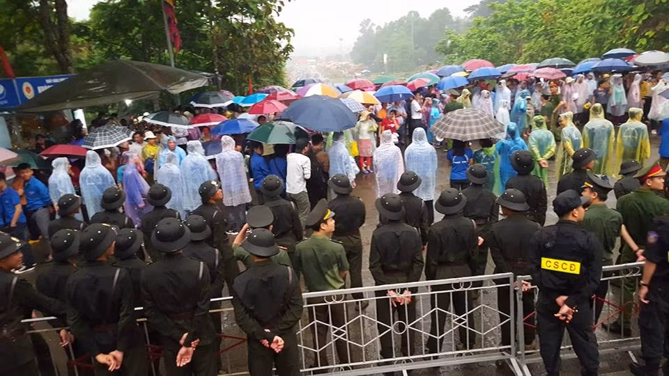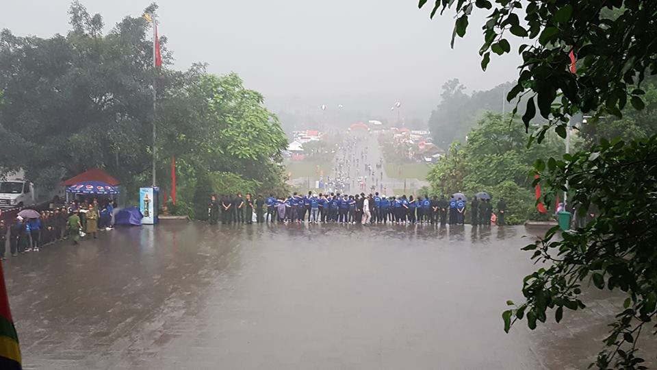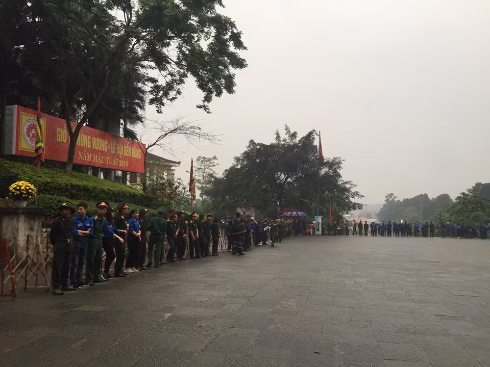 Trong thời điểm diễn ra nghi lễ dâng hương, trời đổ mưa nặng hạt. Dòng người đến lễ hội khá đông, lực lượng công an, quân đội, sinh viên tình nguyện tổ chức thành các vòng bảo vệ từ sân lễ hội đến chân núi Nghĩa Lĩnh, dưới trời mưa tầm tã.