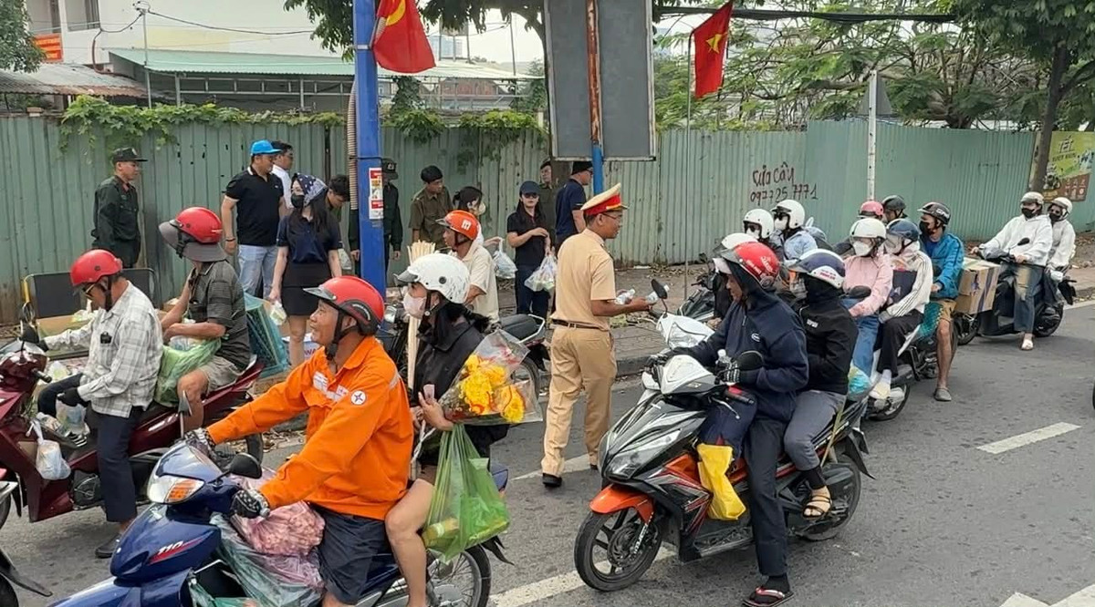 Hành trang lỉnh kỉnh, đường về quê còn xa, nhưng bà con thấy ấm lòng khi được lực lượng Công an tiễn bước bằng món quà nghĩa tình.