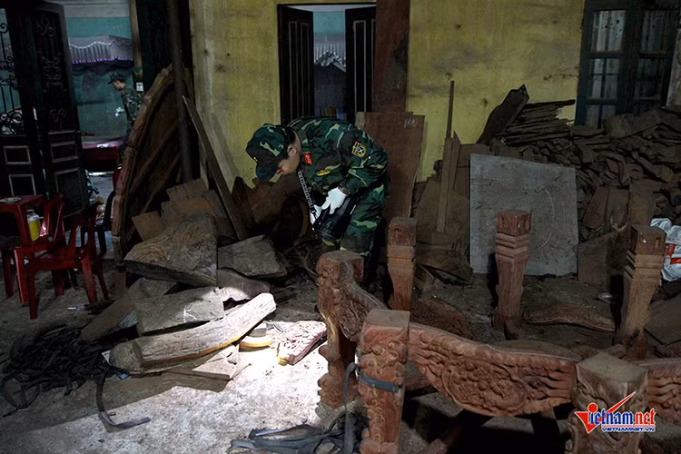 Đêm buông xuống, hàng chục công binh với trang bị các thiết bị chuyên dụng đến từng nhà dân làng Quan Độ, Bắc Ninh để rà tìm, thu gom các dị vật sau vụ nổ.