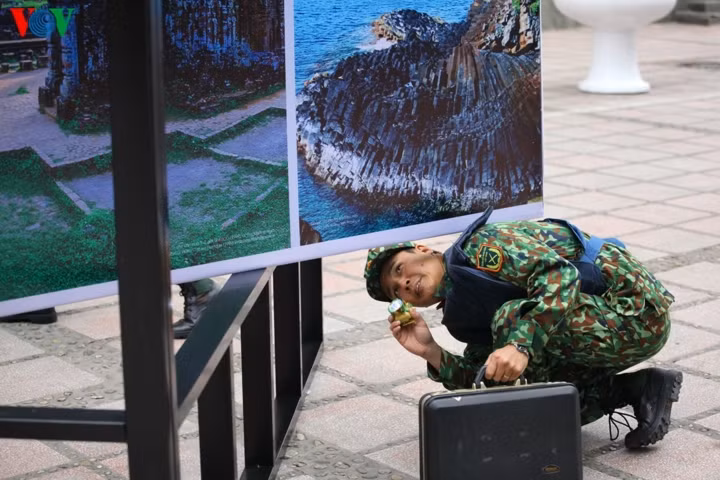 Chỉ cách vài mét, lại có một tốp công binh với thiết bị chuyên dụng để kiểm tra kỹ lưỡng từng chi tiết.
