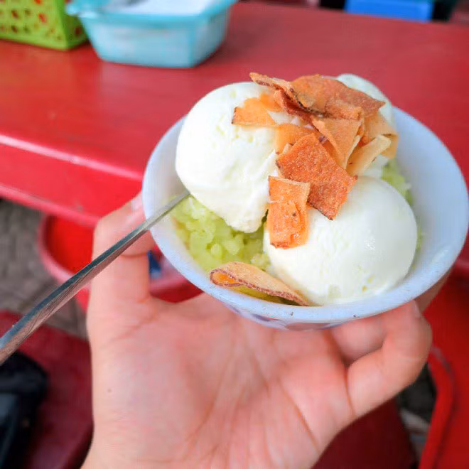 Đây là một trong những hàng đầu tiên khởi nguồn cho món kem xôi Hà Nội. Kem xôi được làm theo kiểu truyền thống, không có phá cách gì nhiều nhưng cũng chính vì thế mà kem xôi ở đây khá chú trọng về chất lượng. Viên kem to, tròn trịa, thoang thoảng hương vani, xôi nếp được nấu rất khéo, mềm mềm, ngọt ngọt, ăn rất ngon!